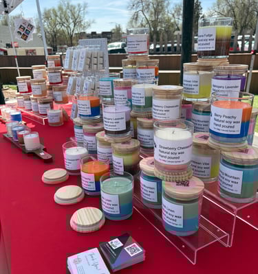 Explore our hand poured, single wick soy candles in vibrant colors.